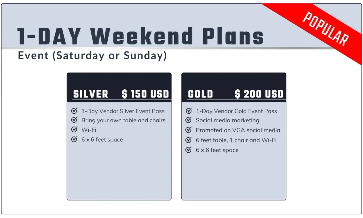 Select the plan that suits you best—secure your vendor booth today,